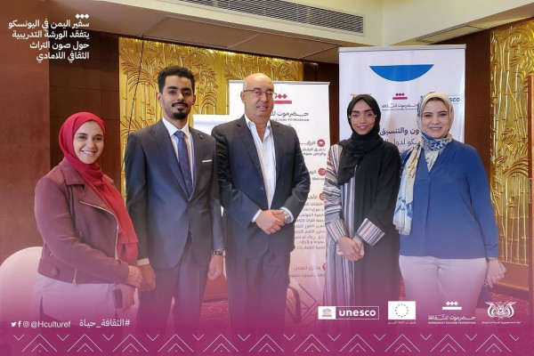 On Wednesday, Dr. Mohammed Jumeih, Yemen’s Ambassador to the United Nations Educational, Scientific and Cultural Organization (UNESCO), visited the training workshop on safeguarding intangible cultural heritage, held in Cairo, Egypt. He was accompanied by Mr. Salah Khaled, UNESCO Representative for the Gulf States and Yemen and Director of the UNESCO Office in Doha.