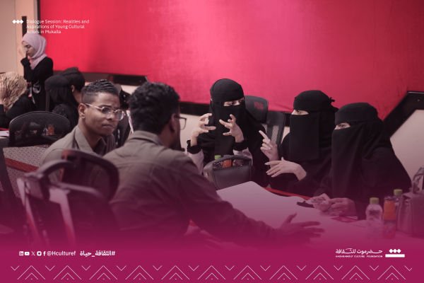 This morning, Wednesday, 2 November 2022, Hadhramout Culture Foundation organized a meeting with cultural actors to discuss the current state of culture in Al-Mukalla, their aspirations, visions, and the challenges they face. The session began with a speech by Executive Director Shorouq Al-Ramadi, presenting the Foundation’s vision, mission, objectives, creative departments, and ongoing projects.