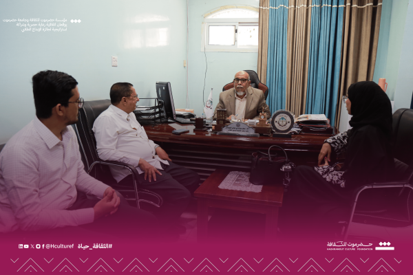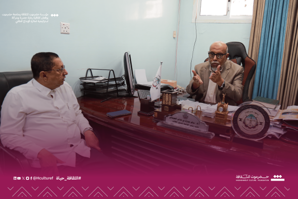 وخلال اللقاء، رحب الدكتور سالم العوبثاني، نائب رئيس الجامعة لشؤون الطلاب، بالمديرة التنفيذية لمؤسسة حضرموت للثقافة المهندسة شروق الرمادي وطاقم المؤسسة، مثمنًا الجهود التي تبذلها المؤسسة في تنفيذ المشاريع الثقافية والفنية. وأكد العوبثاني أن هذه الشراكة ستثمر في خدمة الطلاب بمختلف المجالات الفنية والإبداعية، مشيرًا إلى أن التعاون مع منظمات المجتمع المدني يفتح آفاقًا واسعة لطرح المبادرات النوعية.